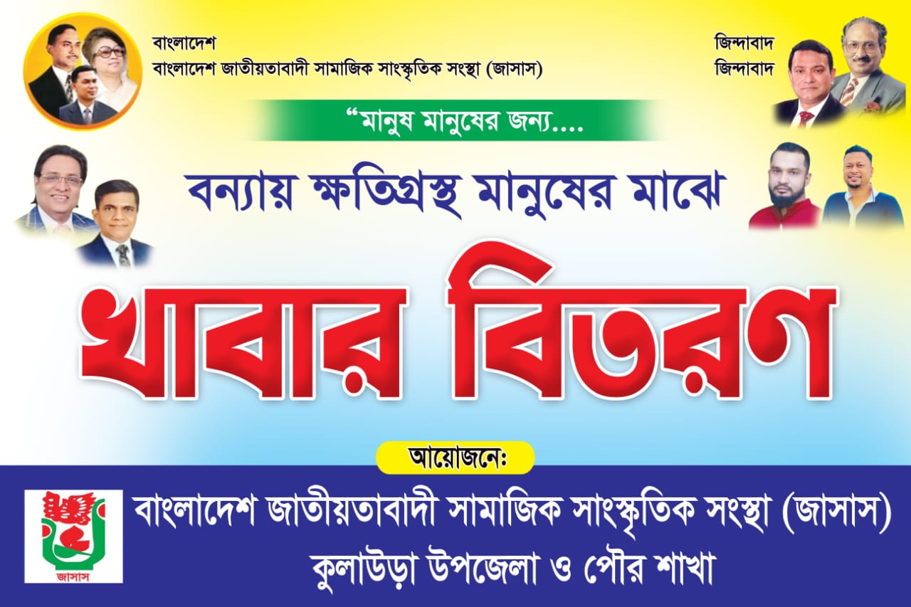 গত ২৭.৮.২৪ ইং বাংলাদেশ জাতীয়তাবাদী সামাজিক সাংস্কৃতিক সংস্থা (জাসাস) কুলাউড়া উপজেলা ও পৌর শাখার উদ্যোগে বন্যা কবলিত এলাকায় খাবার বিতরণ করা হয়।