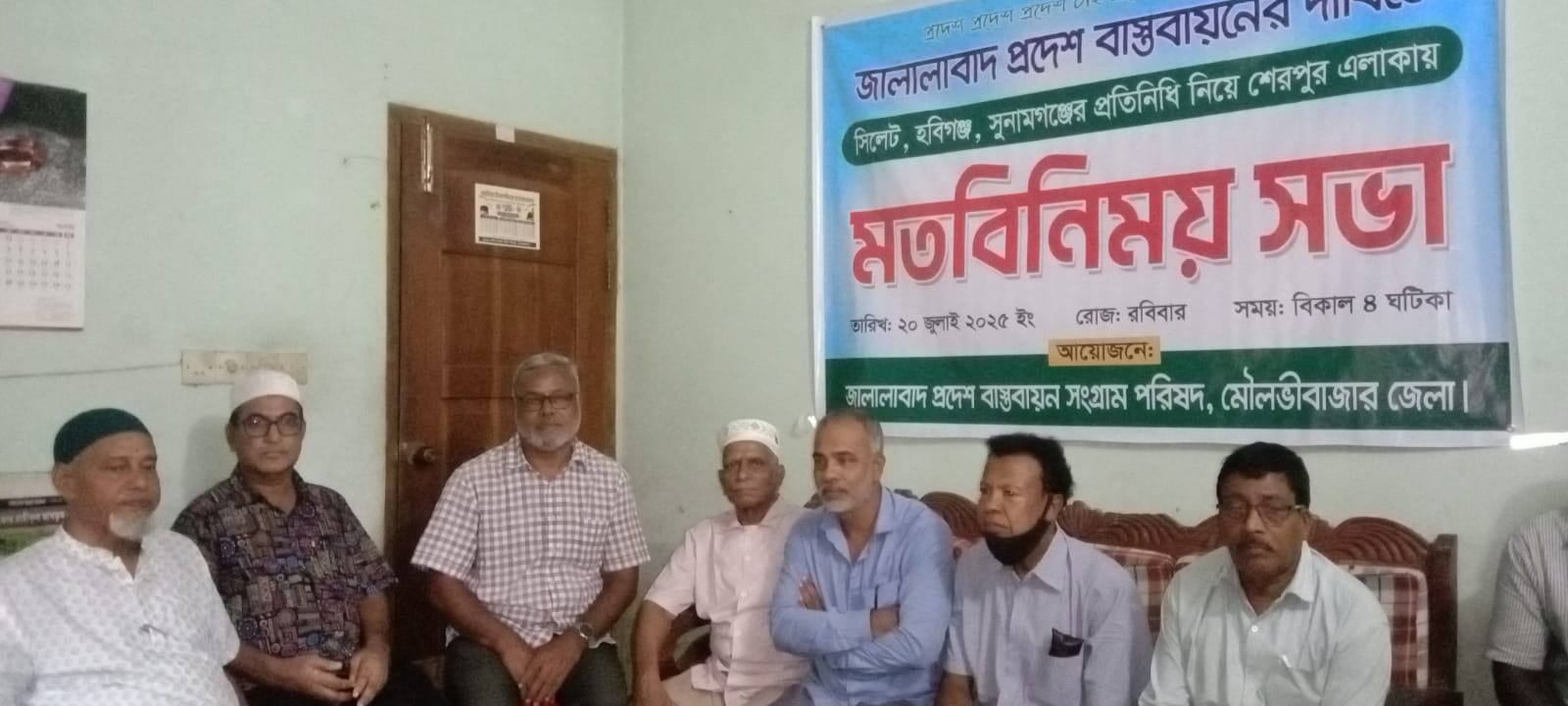 গত ২০ ৭ ২০২৫ ইংরেজি জালালাবাদ প্রদেশ বাস্তবায়ন সংগ্রাম পরিষদ, মৌলভীবাজার জেলা শাখার উদ্যোগে সিলেট ,হবিগঞ্জ ,সুনামগঞ্জের প্রতিনিধি নিয়ে শেরপুর এলাকায় এক "মত বিনিময় " সভার আয়োজন করা হয় । উক্ত মতবিনিময় সভায়
